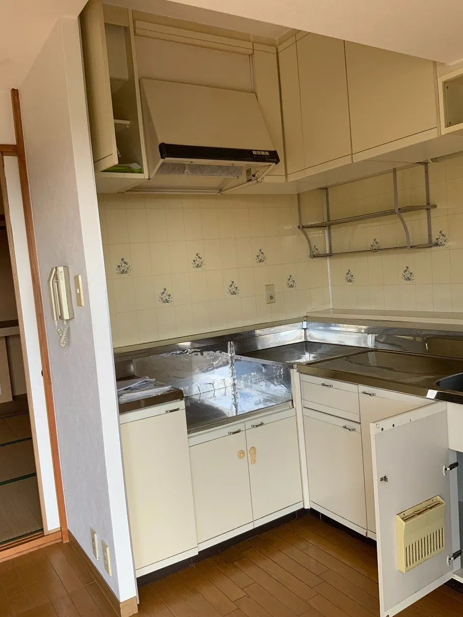 今回の工事では、キッチンのブロックキッチン下台の取替えと、レンジフード、キッチン水栓の交換を行いました。